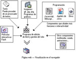 Los componentes de una página web son imágenes, textosy otros contenidos multimedia y están enlazadas de manera que el usuario puede navegar de una página a otra utilizando hipervínculos, un concepto de interactividad surgido con el fenómeno Internet.